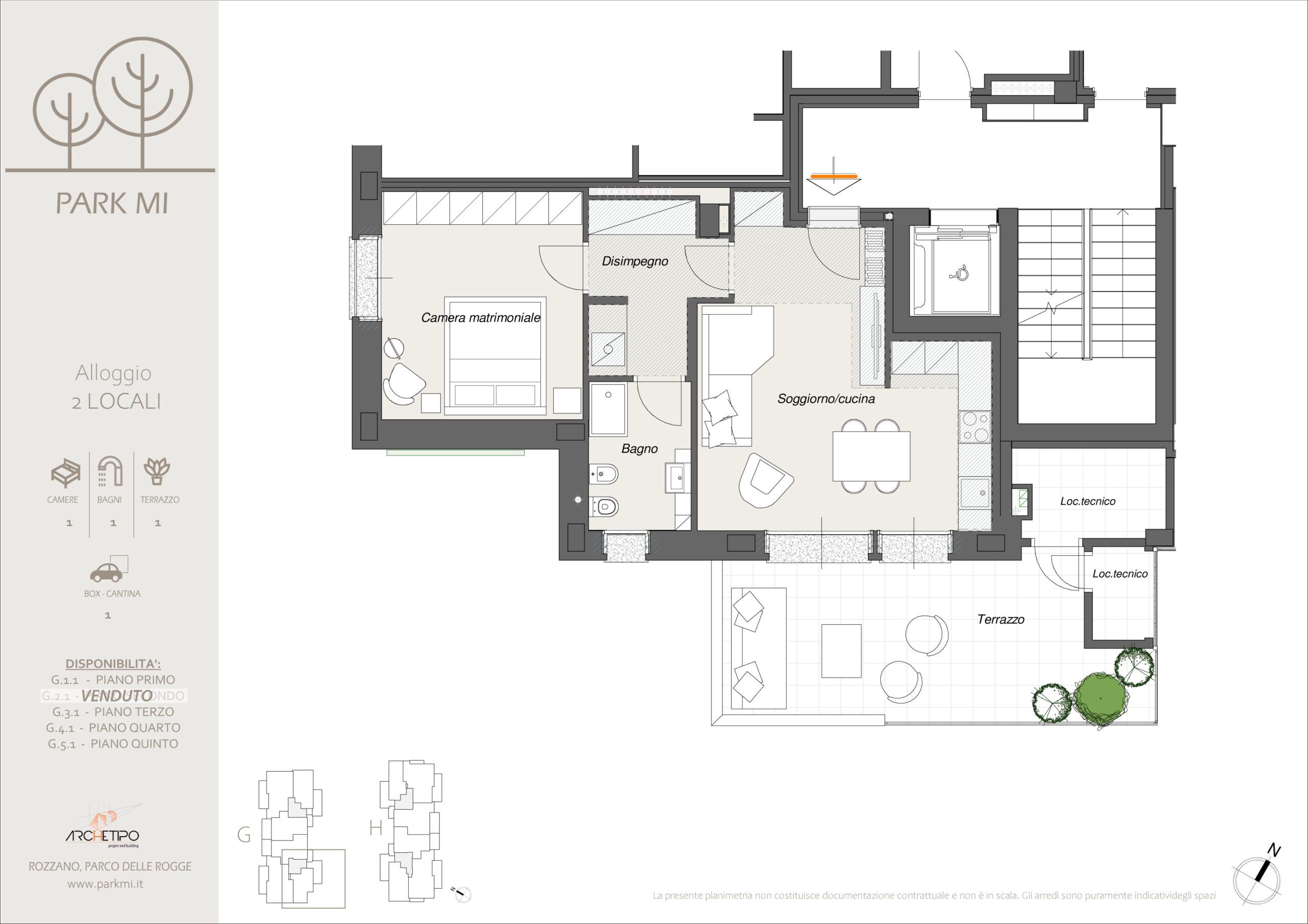 Tipo abitativo n. 1 – Palazzina G (dal 1° al 5° piano, vedi planimetrie) – 2LOC.Gx1