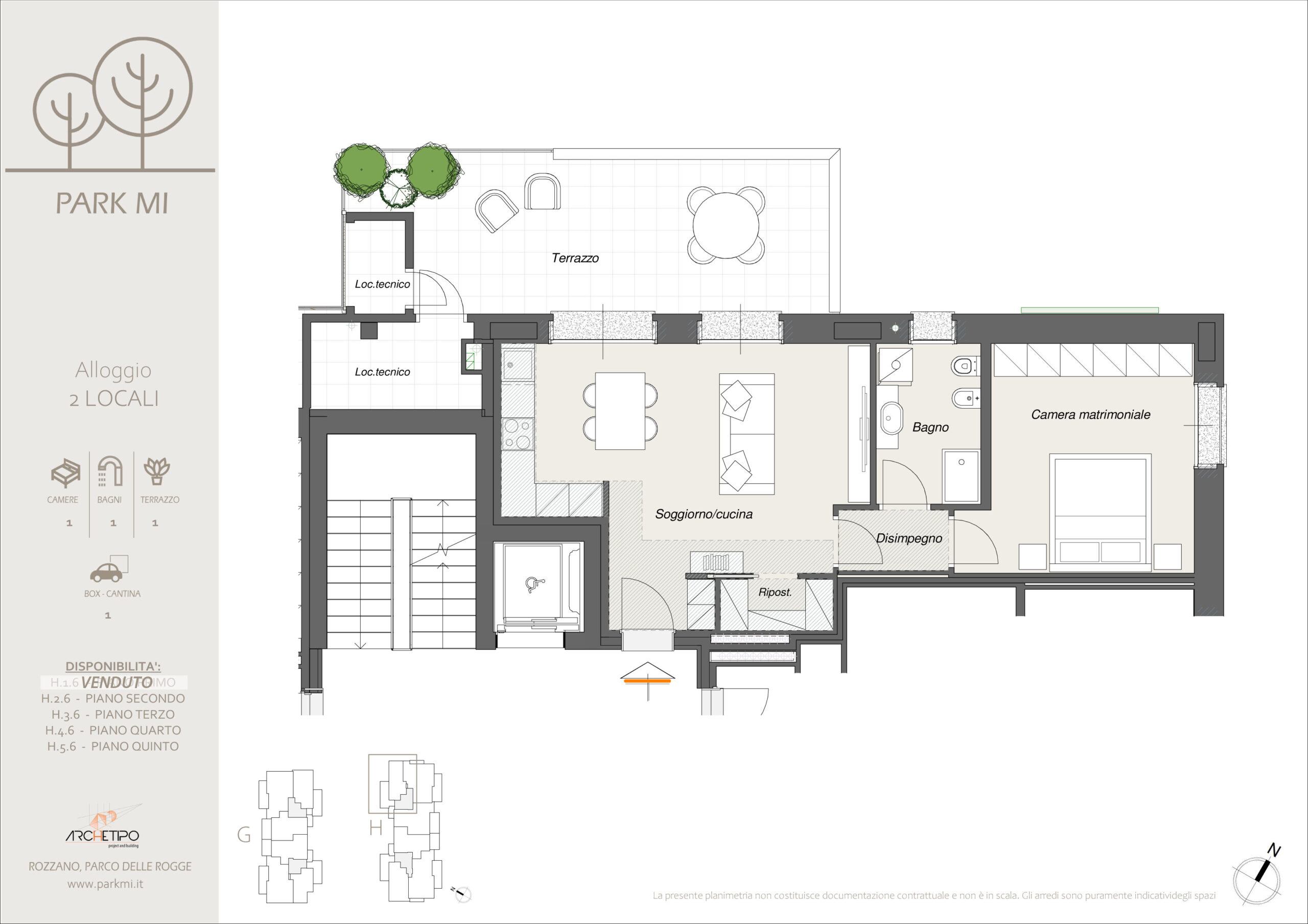 Tipo abitativo n. 6 – Palazzina H (dal 1° al 5° piano, vedi planimetrie) – 2LOC.Hx6
